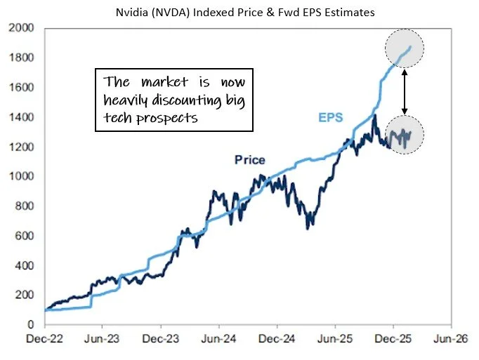 Nvidia (NVDA) Price vs Fwd EPS Estimates, Dec 2022 - Feb 2026. Source: Goldman Sachs. Click for larger image