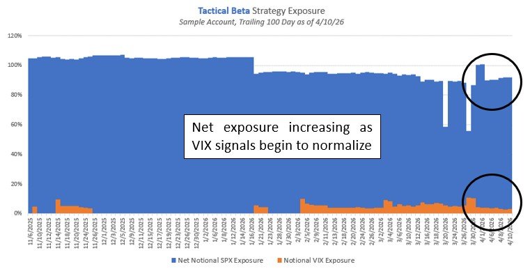 Tactical Beta daily exposure, trailing 100 day as of 4/10/26. Source: TCM. Click for larger image
